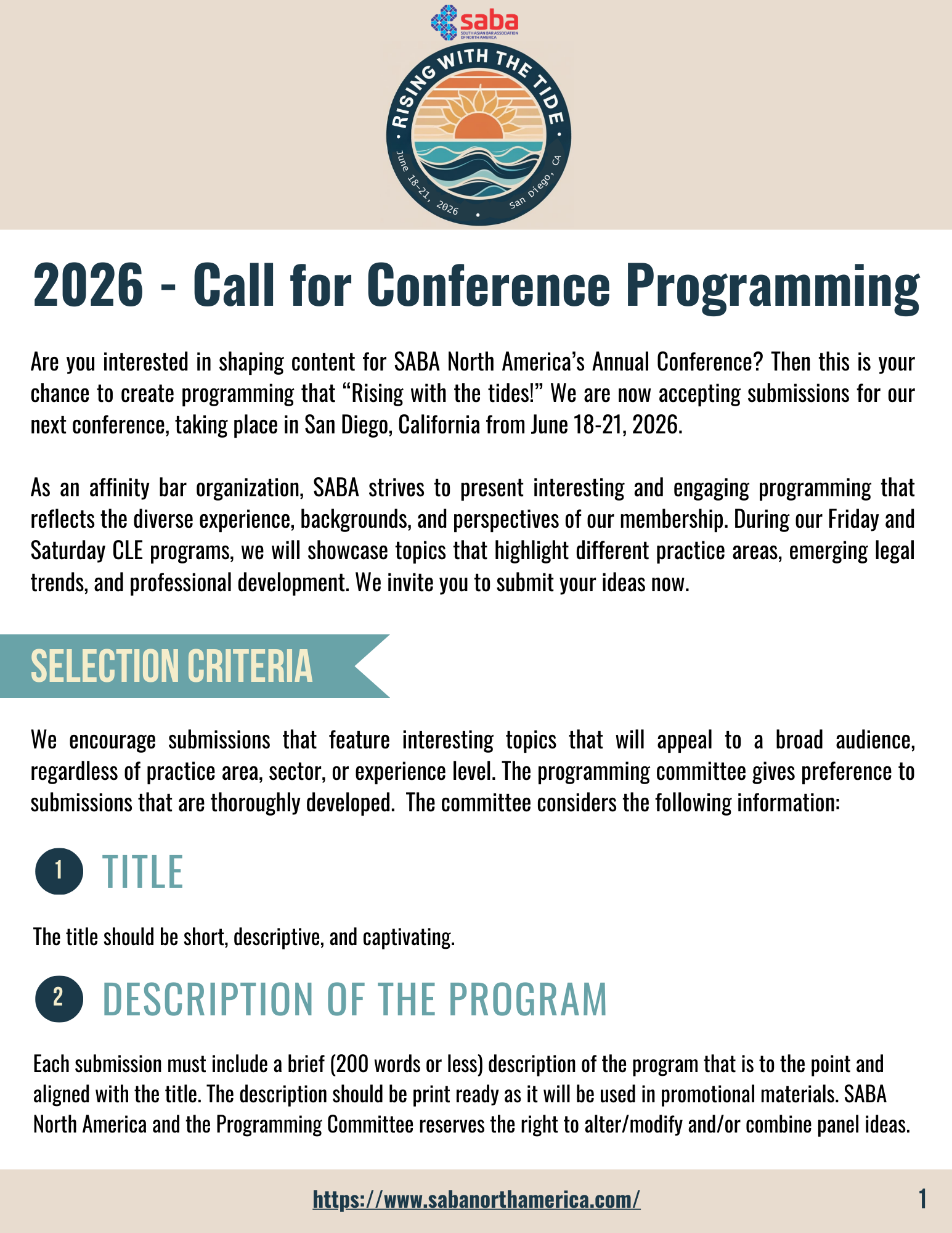 Are you interested in shaping content for SABA North America's Annual Conference? Then this is your chance to create programming that has us rising with the tides! We are now accepting submissions for our next conference taking place in San Diego, California from June 18-21, 2026.
