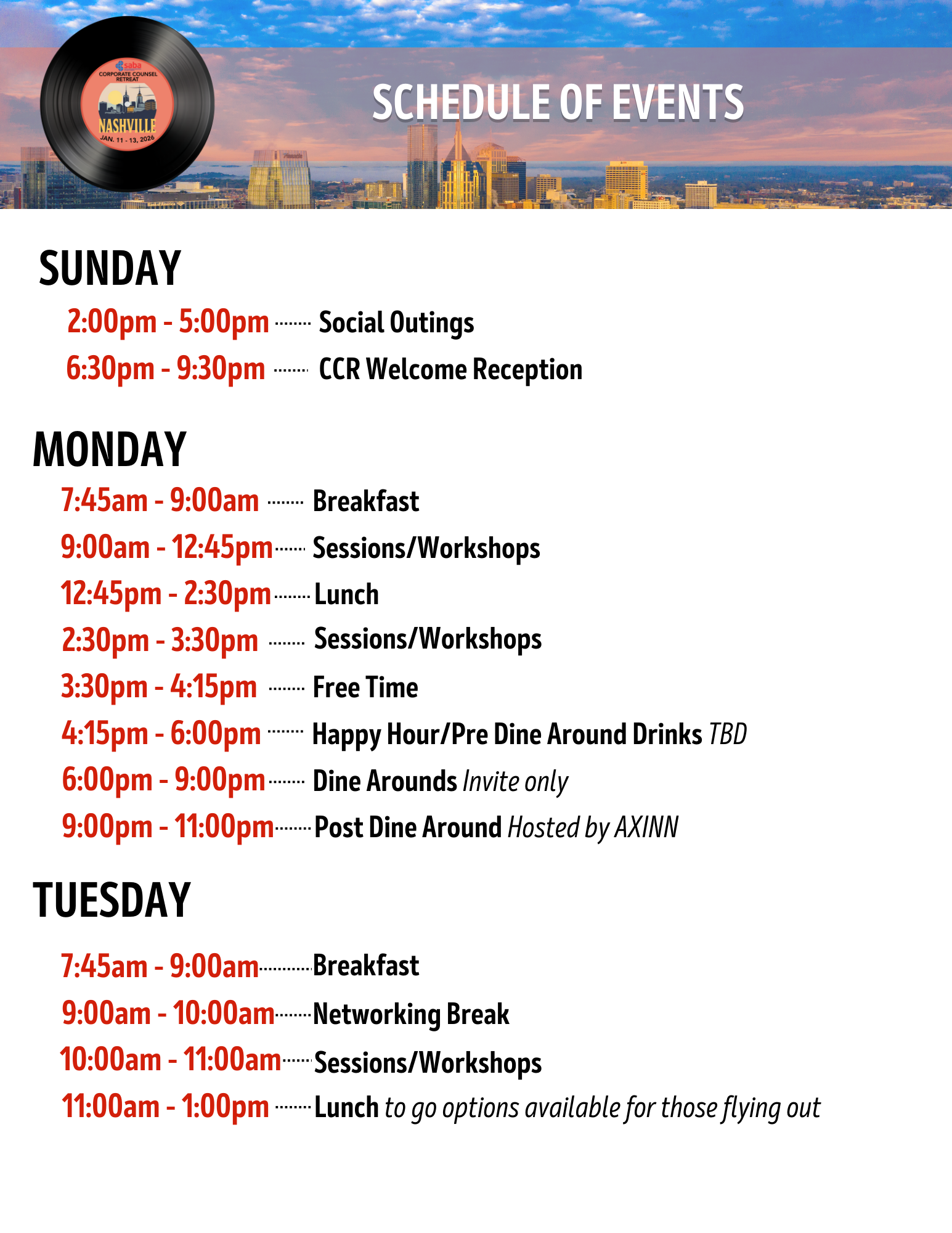 SABA North America is gearing up for the 4th Corporate Counsel Retreat (CCR)! Taking place at the Noelle in Nashville, Tennessee, from January 11-13, 2026, CCR will bring together general counsel and in-house counsel from across the country for an immersive, high-impact retreat focused on connection, collaboration, and professional growth.